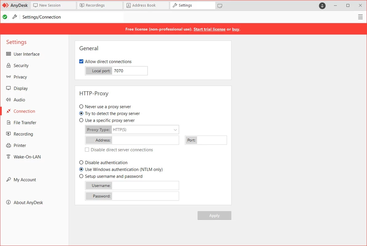 Anydesknécessite une connexion Internet, même si la bande passante est faible et que la connexion est mauvaise. Vous pouvez configurer une version en lecture seulepour contrôler votre collaborateur de manière plus fiable et utiliser l' outil de gestion de fichierspour redémarrer un PCet imprimer des fichiers.